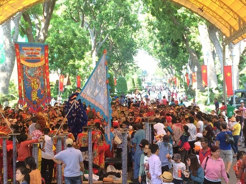 Tại trung tâm Thảo Cầm Viên các bài biểu diễn múa lân có tới hàng ngàn khán giả vây quanh.