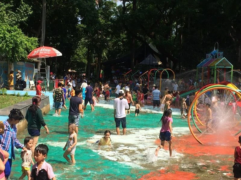 Dưới cái nóng của Sài Gòn, công viên nước là nơi lý tưởng để trẻ em vui chơi.