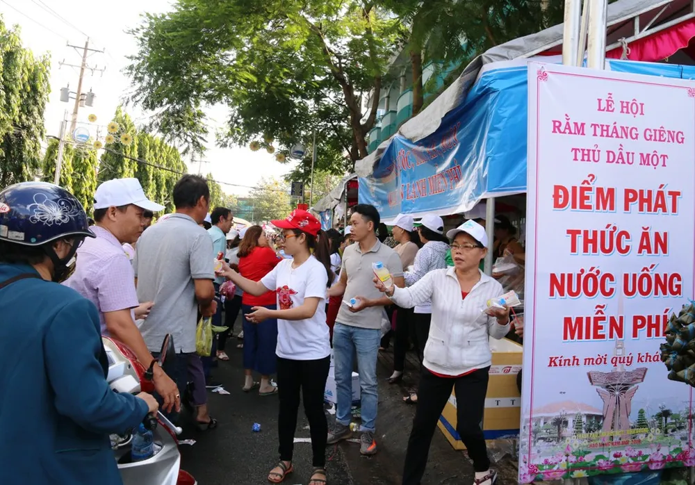 Lế hội Rằm tháng riêng ở Bình Dương được nhiều người xem như một lễ hội miễn phí vì ở đây tất cả mọi thứ hầu hết đều miễn phí: Xe ôm, vá xe, bánh mì, nước uống, khăn lạnh, Wifi, nhang và cả cây thần tài đều được phát miễn phí.