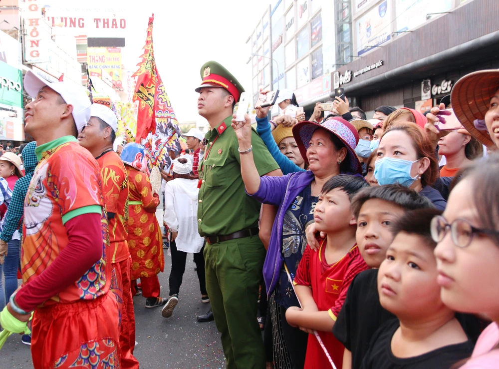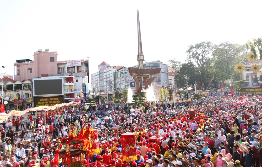 Theo ghi nhận của phóng viên, đúng chính lễ diễn ra vào buổi chiều ngày 19-2 (15-1 âm lịch) hàng chục ngàn người từ các địa phương đã đổ về trung tâm TP Thủ Dầu Một để tham dự lễ hội Rằm tháng riêng với nghi thức rước kiệu bà nổi tiếng.