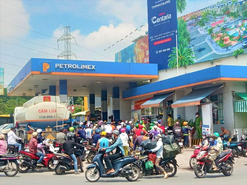 Đặc biệt, khoảng 12 giờ tại cửa hàng xăng COMECO đường Kinh Dương Vương, quận 6 rất đông khách đậu xe xung quanh cửa hàng chờ đến lượt đổ xăng.