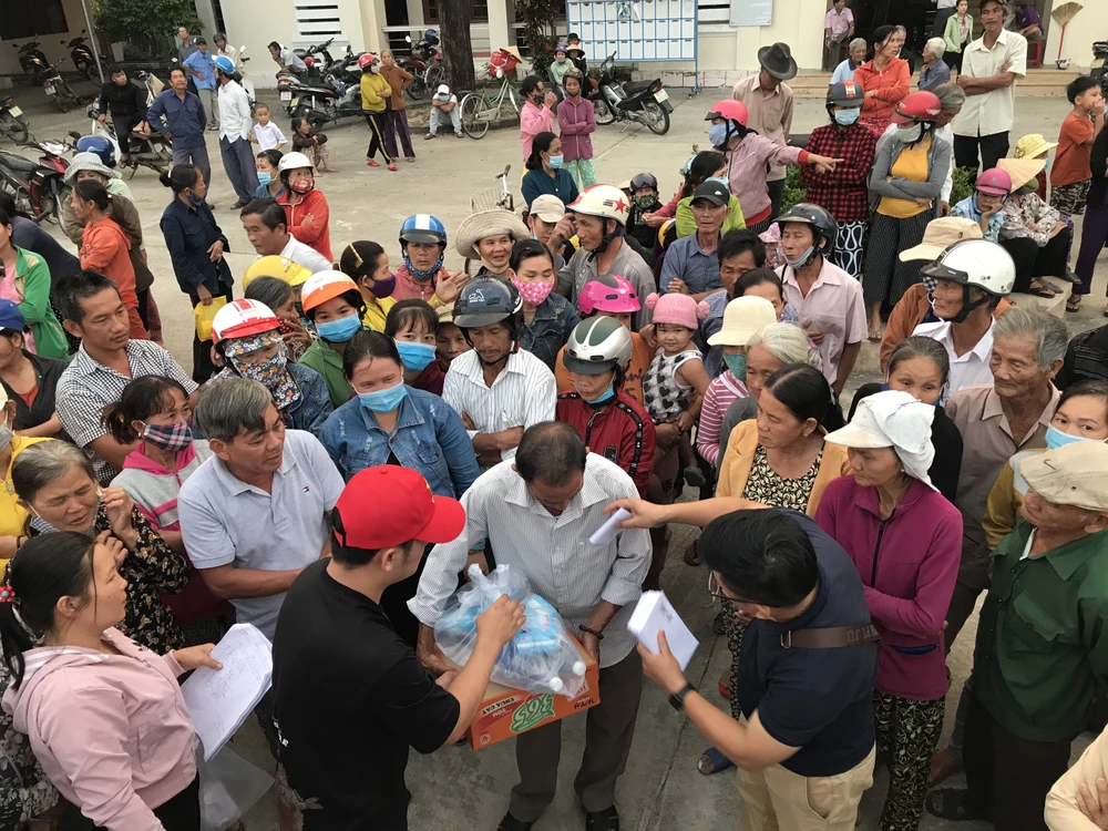 Báo Pháp Luật TP.HCM trao quà của bạn đọc hảo tâm, mạnh thường quân cho người dân ở xã Phổ Thuận, huyện Đức Phổ, Quảng Ngãi. Ảnh: TẤN VIỆT.