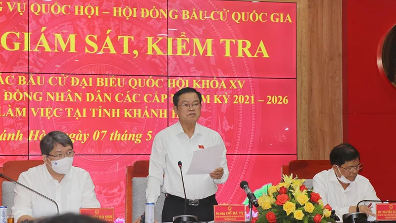 Ngày 7-5, tại TP Nha Trang, đoàn giám sát, kiểm tra công tác bầu cử của Ủy ban Thường vụ Quốc hội (QH), Hội đồng bầu cử quốc gia do Đại tướng Đỗ Bá Tỵ, Phó Chủ tịch QH, làm trưởng đoàn đã có buổi làm việc với lãnh đạo tỉnh, Ủy ban bầu cử tỉnh Khánh Hòa.