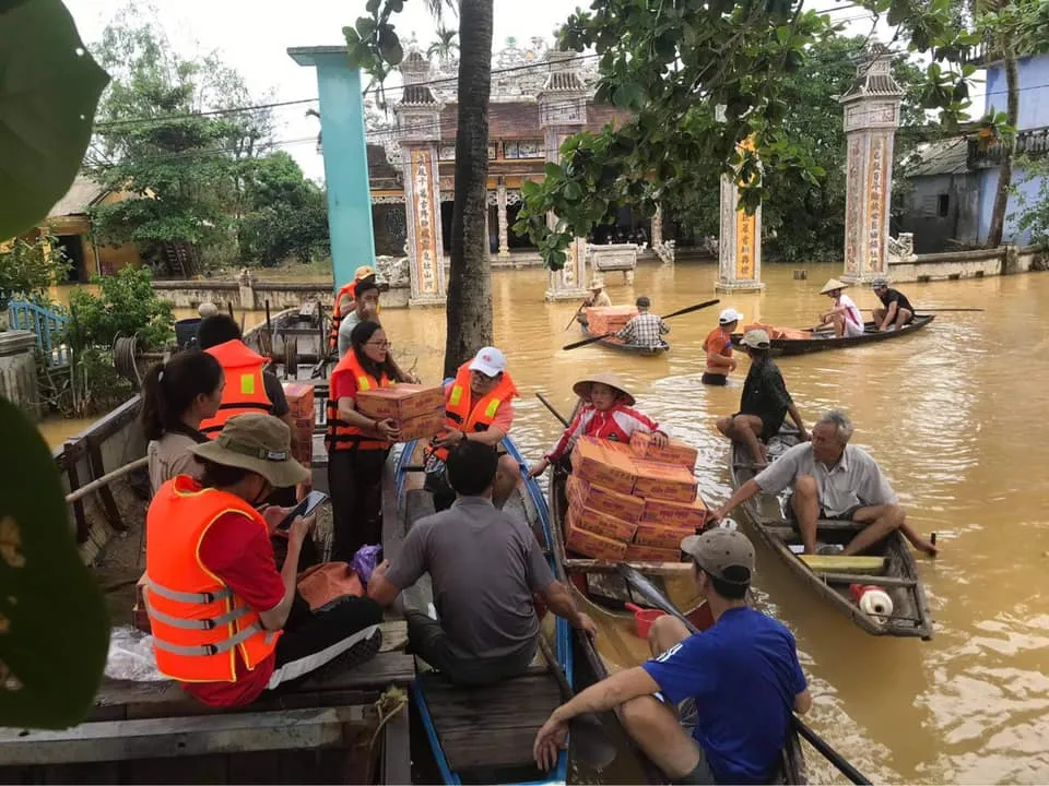 Đoàn của báo Pháp Luật TP.HCM đang vẫn chuyển hàng cứu trợ cho người dân tại thôn Đông Xuyên và thôn An Xuân (xã Quảng An, huyện Quảng Điền, tỉnh Thừa Thiên-Huế).