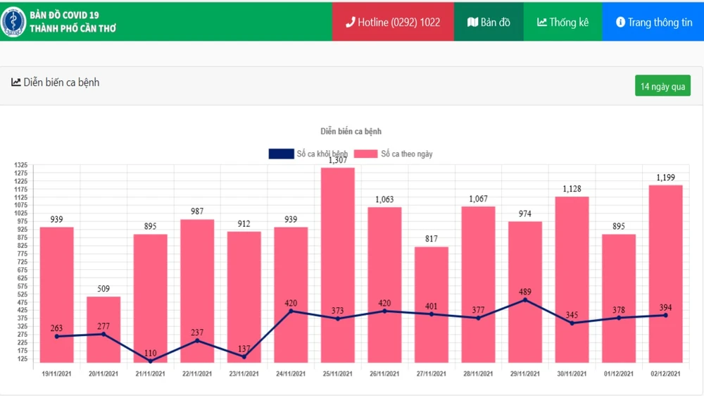 Ca bệnh tại Cần Thơ trong 14 ngày qua. Ảnh: Cổng thông tin COVID-19 Cần Thơ.