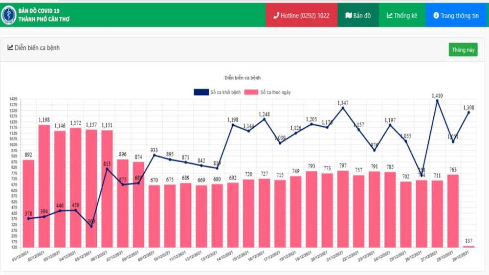 Theo Cổng thông tin COVID-19 TP Cần Thơ, cập nhật đến 19 giờ ngày 29-12, TP ghi nhận thêm 137 ca nhiễm mới. Đây là số ca mới trong ngày thấp nhất gần hai tháng qua trên địa bàn. Cạnh đó, trong ngày TP này có thêm 1.308 ca điều trị khỏi.