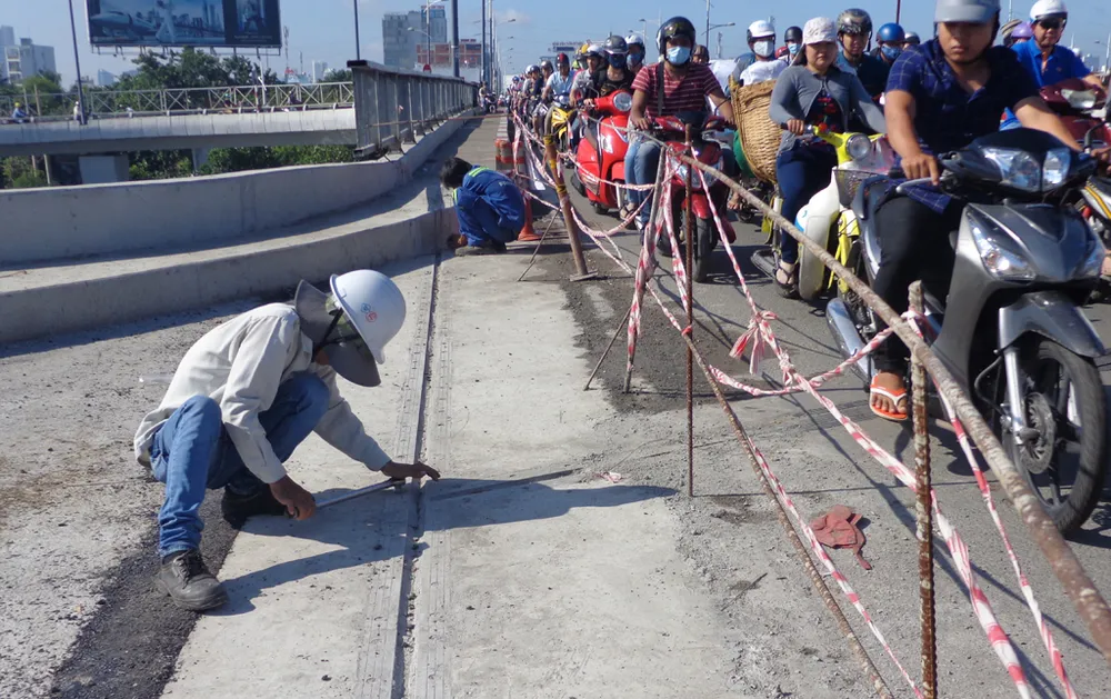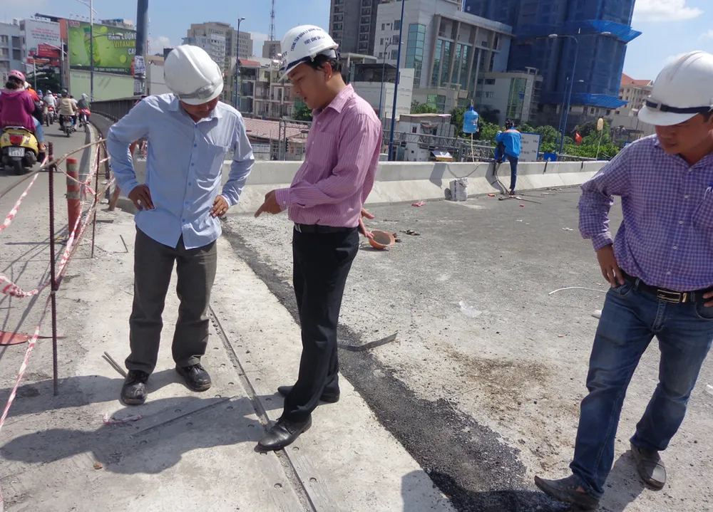 Khe co giãn, điểm nối giữa cầu chính và hai nhánh rẽ cũng được kiểm tra nghiêm ngặt trước ngày thông xe.