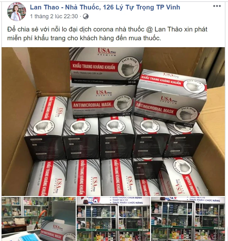 Ngày 1-2, nhà thuốc Lan Thao lên mạng xã hội thông báo "xin phát miễn phí khẩu trang cho khách hàng đến mua thuốc" và hôm nay bị lập biên bản bán 5.000 đồng/khẩu trang.