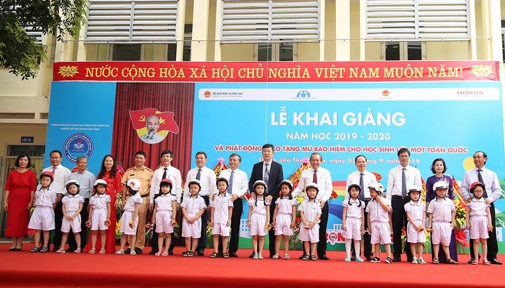 Sáng 5-9, hòa chung trong không khí tươi vui của ngày hội toàn dân đưa trẻ tới trường, tại Trường Tiểu học Hoàng Hoa Thám, TP Thanh Hóa, Ủy ban An toàn giao thông (ATGT) Quốc gia phối hợp với Bộ GD&ĐT và Công ty Honda Việt Nam (HVN) tổ chức lễ trao tặng mũ bảo hiểm cho học sinh lớp 1 toàn quốc năm học 2019-2020 với chủ đề “Giữ trọn ước mơ”.