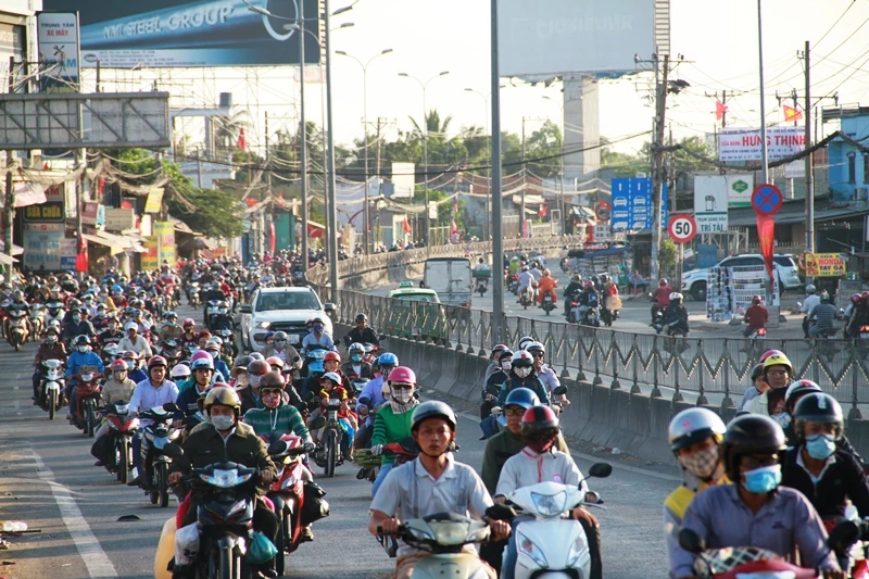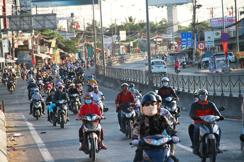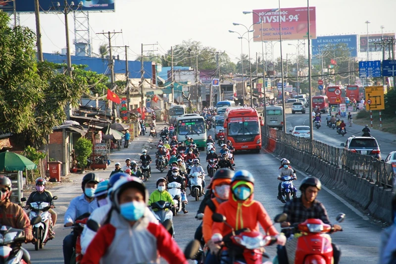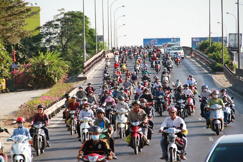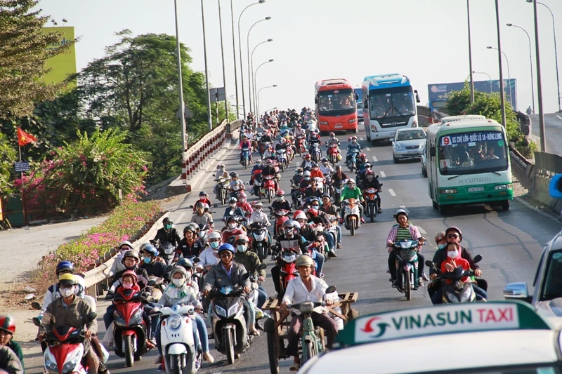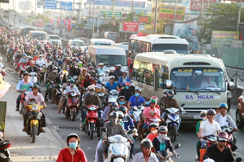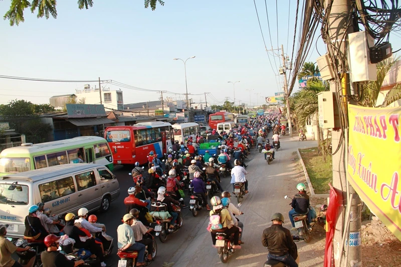 Theo quan sát, từ 16 giờ đến 17 giờ ngày 14-2 (tức mùng 7 tết) ngày cuối cùng của đợt nghỉ lễ tết Nguyên đán kéo dài gần 10 ngày, hàng ngàn phương tiện cá nhân của người dân từ các tỉnh miền Tây như Long An, Cần Thơ, Trà Vinh... đổ về trung tâm thành phố trên quốc lộ 1A – cửa ngõ phía Tây Sài Gòn để chuẩn bị sắp xếp nơi ăn chốn ở cho một tuần làm việc mới bắt đầu từ thứ Hai, ngày 15-2 dương lịch.