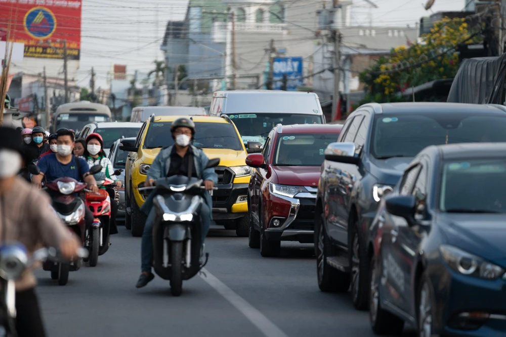 Ùn ứ giao thông trên đường Lý Thái Tổ, hướng từ Nhơn Trạch, Đồng Nai đi TP.HCM. Ảnh: ĐT. |