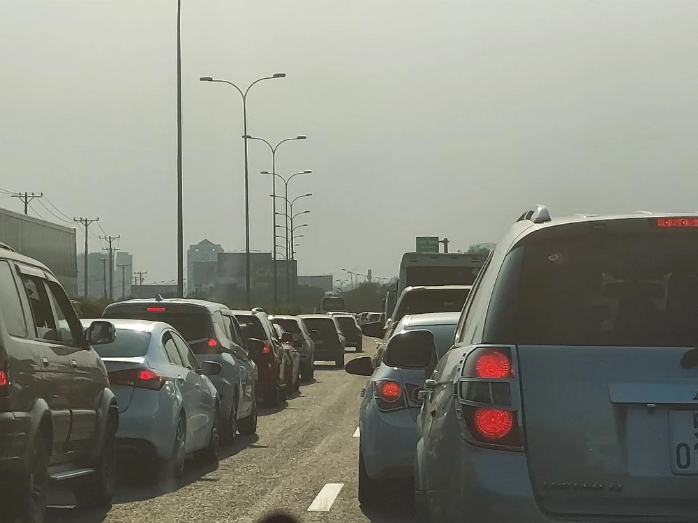 Cũng theo ghi nhận của PV tại cao tốc TP.HCM - Long Thành - Dầu Giây, lượng ô tô tăng cao khiến cao tốc ùn ứ một đoạn hướng về trung tâm TP.