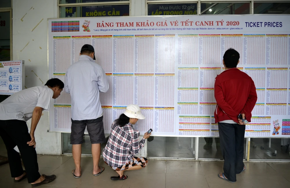 Bảng tham khảo giá vé tết.