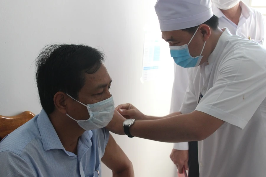 Một cán bộ lãnh đạo trong Ban chỉ đạo phòng chống dịch tỉnh Cà Mau đã được tiêm vaccine sáng nay 26-4-2021 (ảnh: CTV).