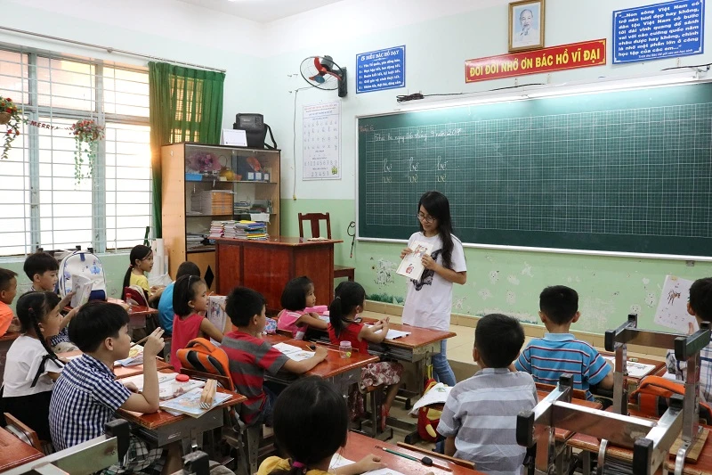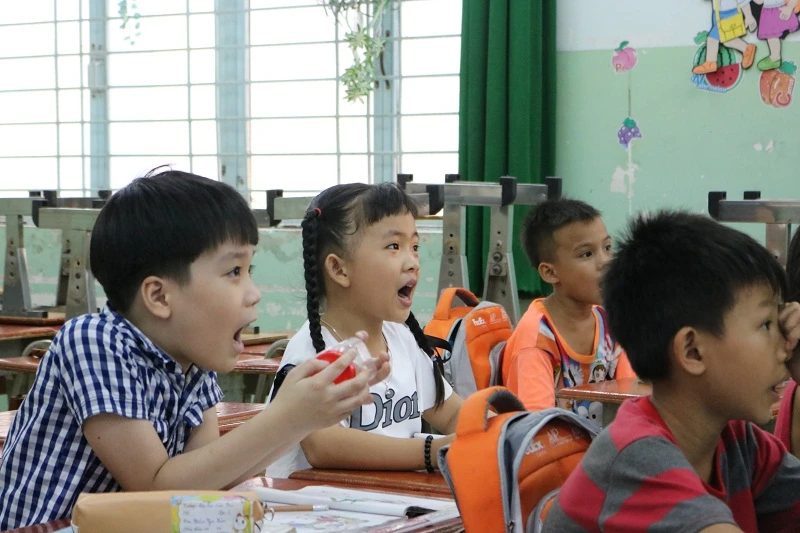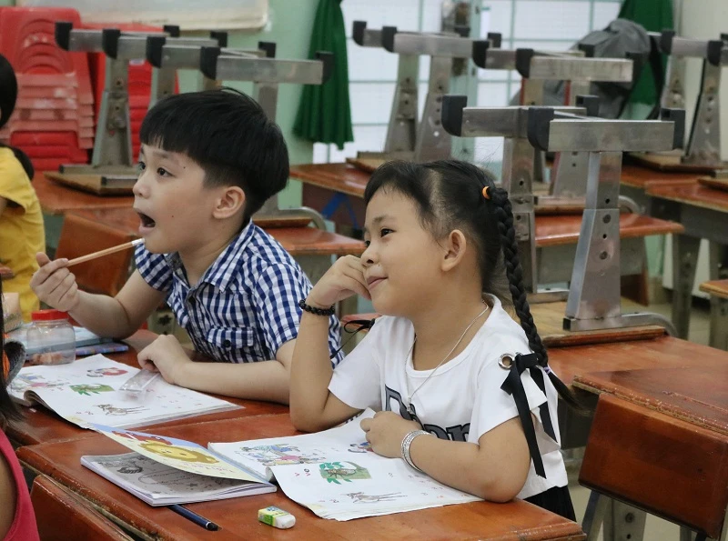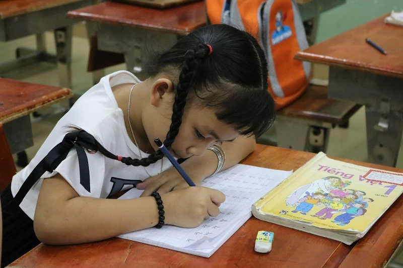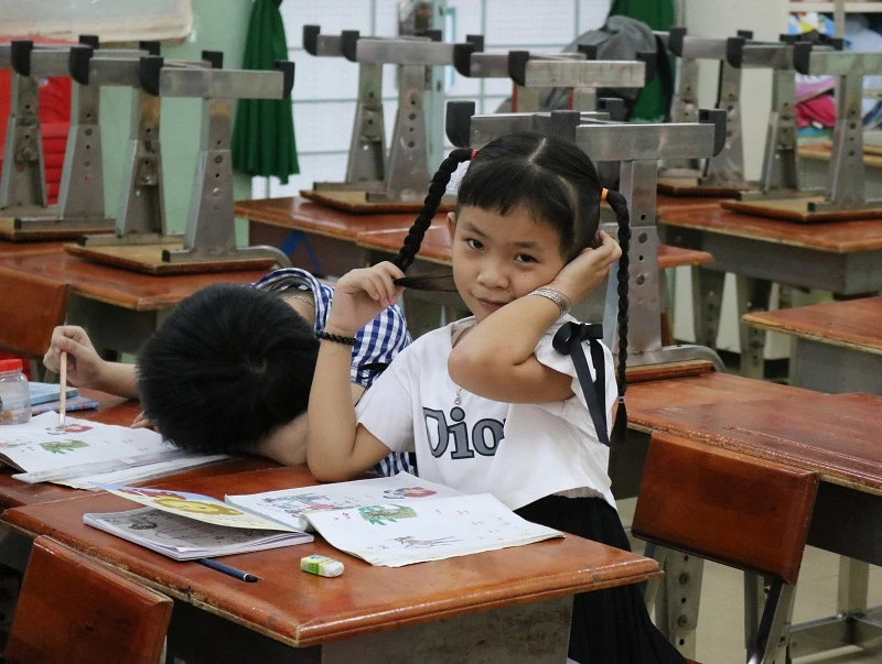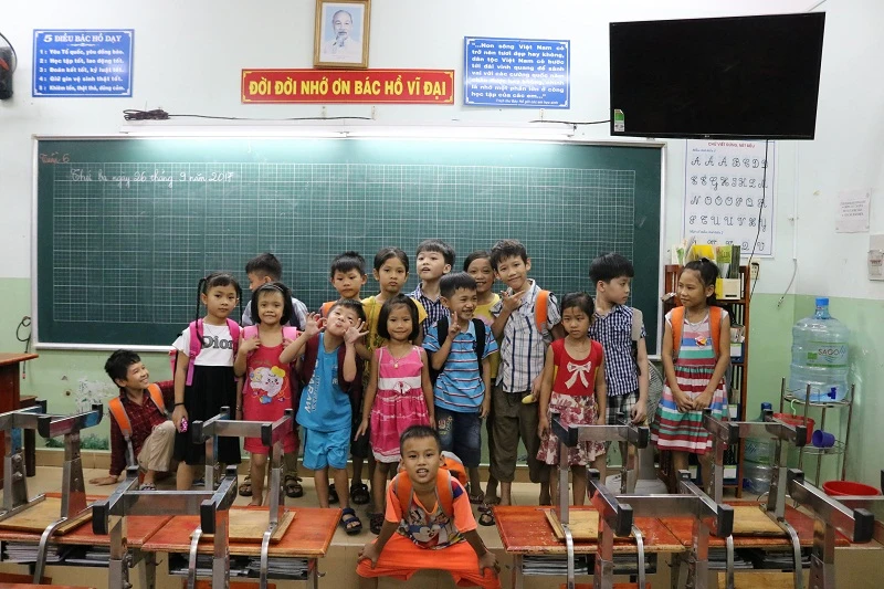 Lớp học mới của Hân bắt đầu từ 17 giờ đến 18 giờ 45 phút, tại Trường tiểu học Hiệp Phú. Ảnh: THANH TUYỀN.