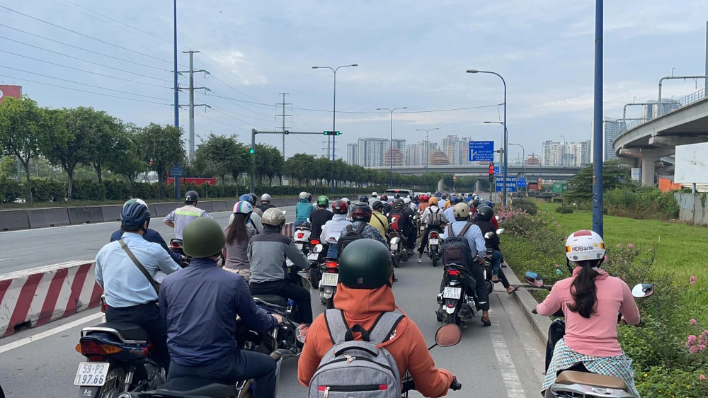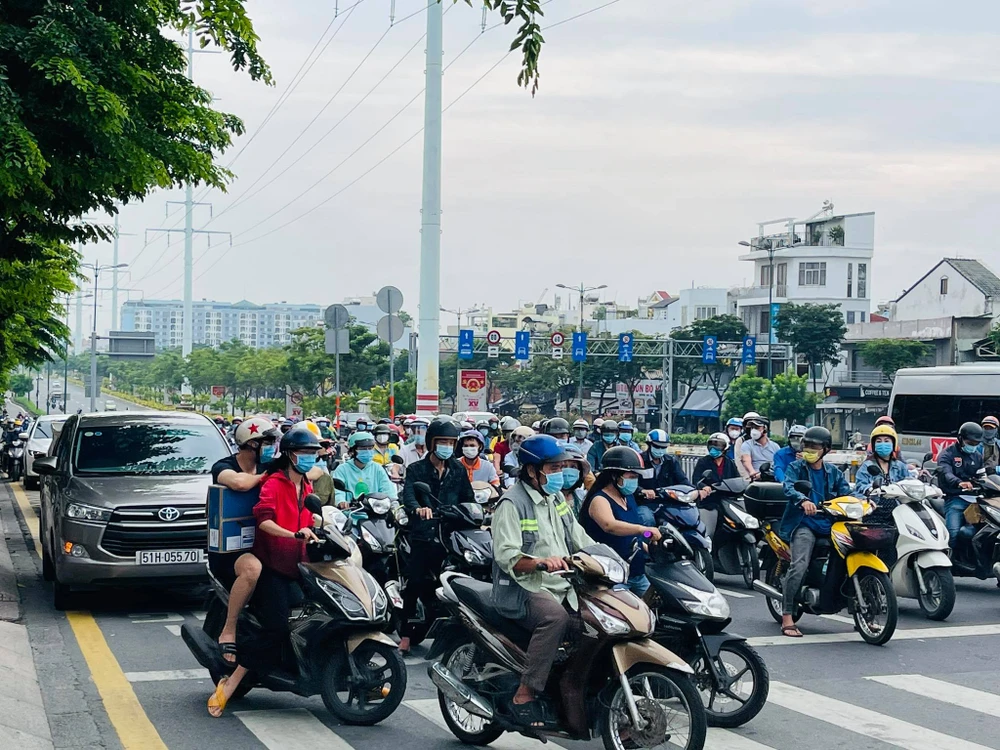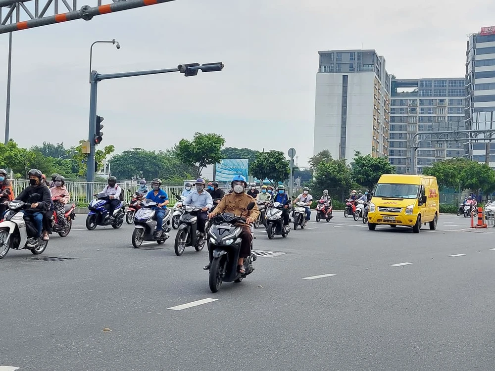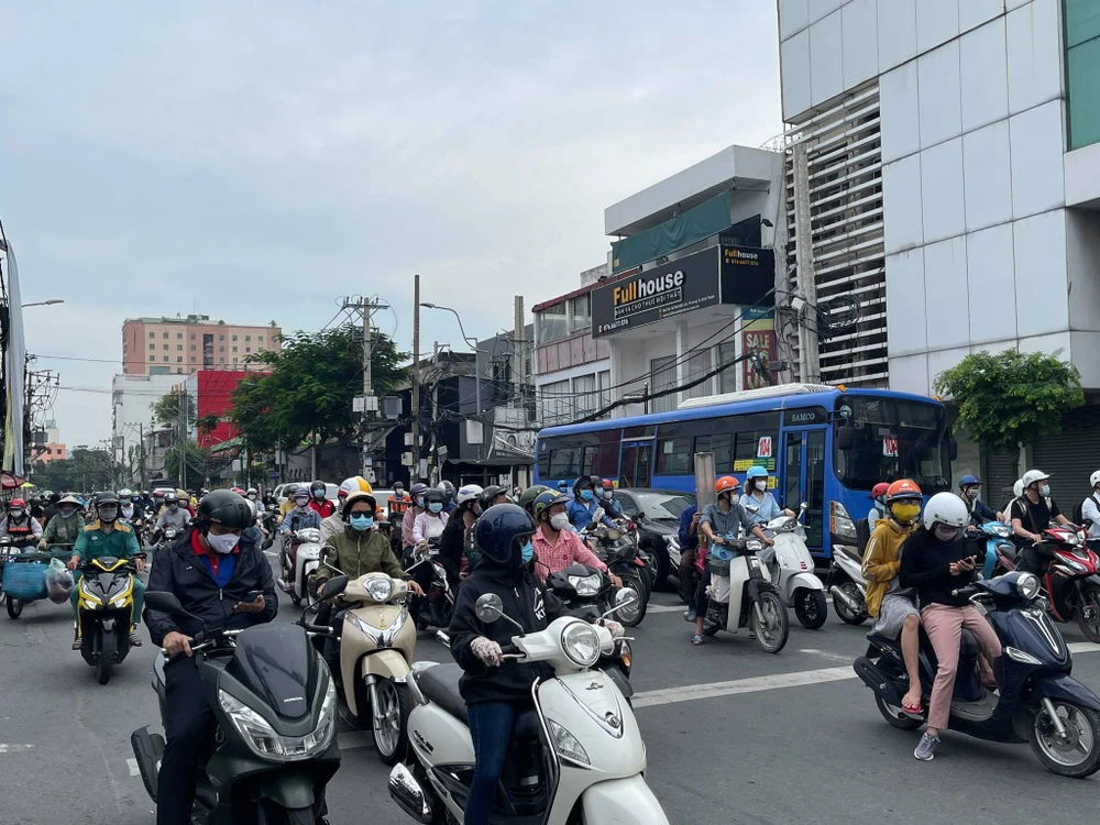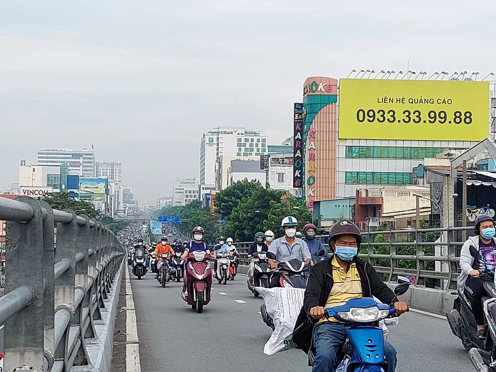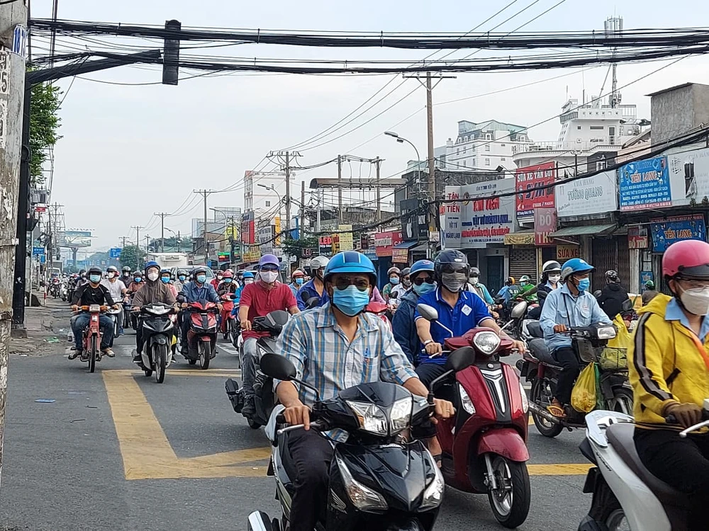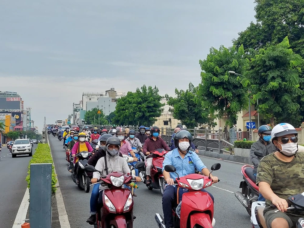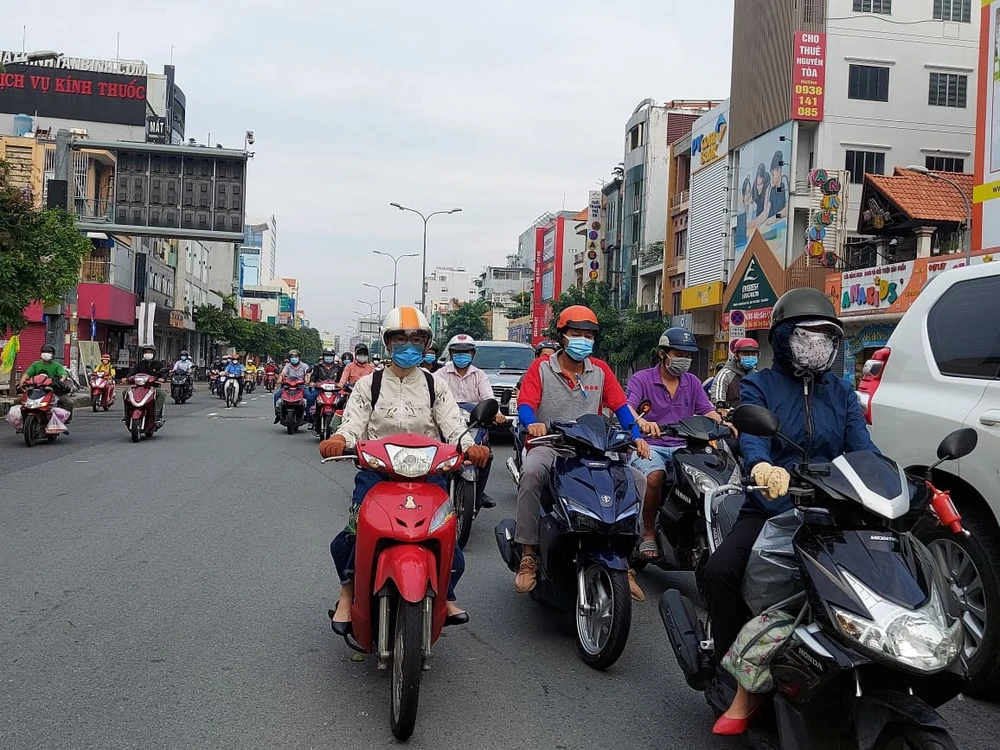 Theo ghi nhận của PV trong sáng 4-10, nhiều tuyến đường ở TP.HCM có lượng xe lưu thông rất đông đúc. Nhiều tuyến đường còn có tình trạng kẹt xe nhẹ. Phần lớn, người dân sử dụng xe máy để di chuyển.