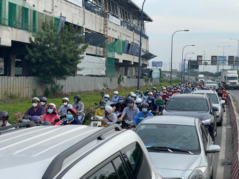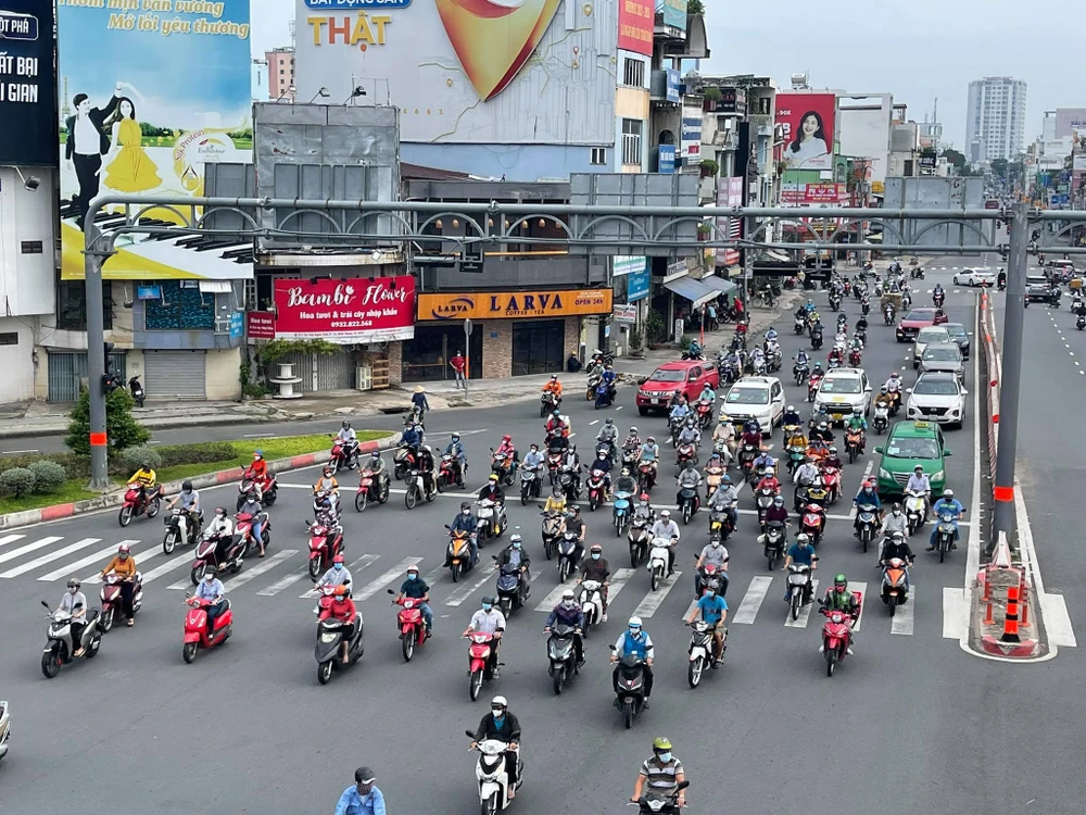 Khu vực phía Đông TP, các tuyến đường như xa lộ Hà Nội, Điện Biên Phủ... người dân di chuyển rất đông không kẹt xe nghiêm trọng như thời gian TP chưa giãn thực hiện cách xã hội. Càng vào trong nội thành TP, các tuyến đường càng đông đúc. Điển hình như tuyến Bạch Đằng, Đinh Bộ Lĩnh (quận Bình Thạnh); Phạm Văn Đồng (quận Gò Vấp); Võ Thị Sáu, Hai Bà Trưng (quận 1) đều có rất đông người và phương tiện đi chuyển.