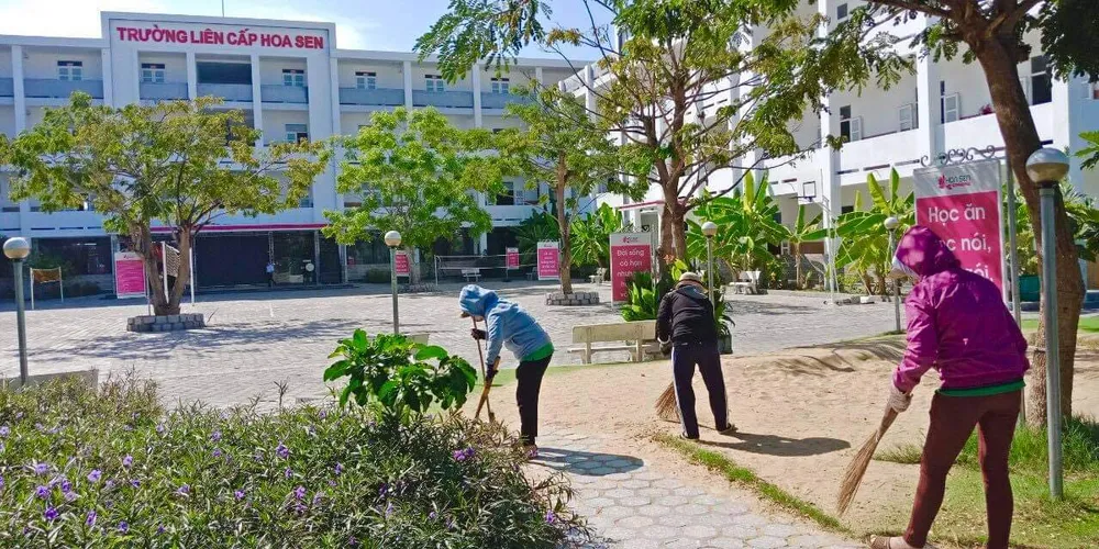 Trường Liên cấp - Hoa Sen tại Thành phố Phan Rang Tháp Chàm, với mô hình học bán trú, học sinh ăn nghỉ tại trường, nên công tác phòng dịch được nhà trường chú trọng đặc biệt.