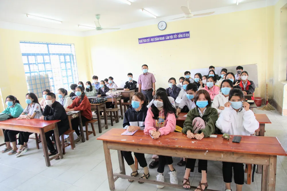 Học sinh Trường THPT An Phước trở lại với lớp học. Ảnh: NÚI XANH