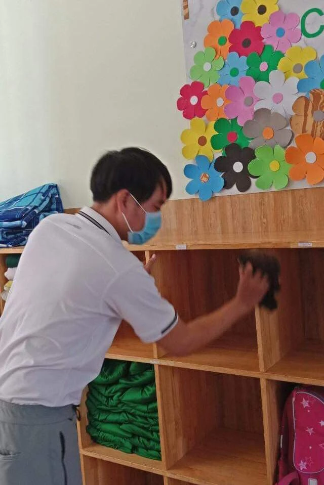 Trường liên cấp Hoa Sen tổ chức vệ sinh, khử khuẩn để đón học sinh trở lại trường sau kỳ nghỉ vì dịch bệnh.