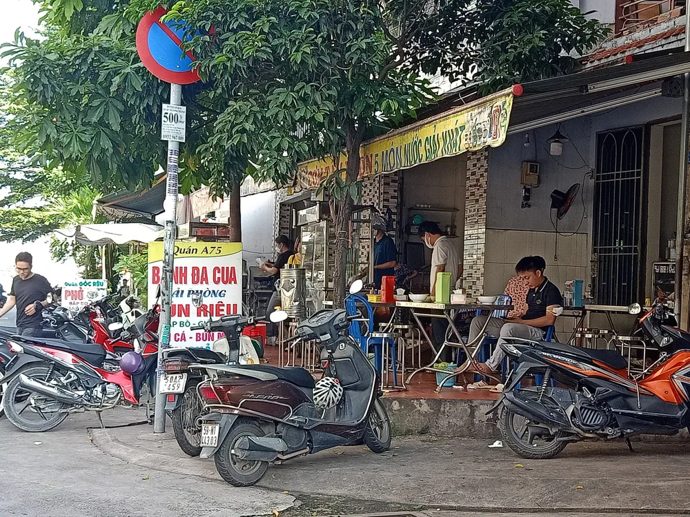 Các quán ăn trong hẻm cũng đón khách trở lại, dù vẫn còn thưa thớt, song theo những người bán việc được mở bán tại chỗ là tín hiệu vui cho người kinh doanh sau nhiều tháng "ngủ đông".