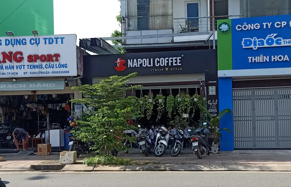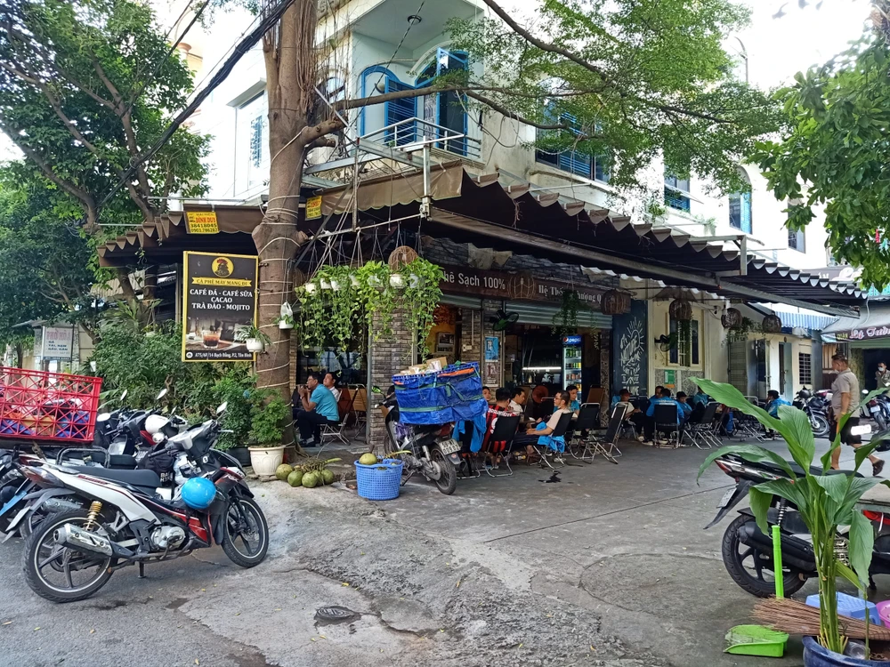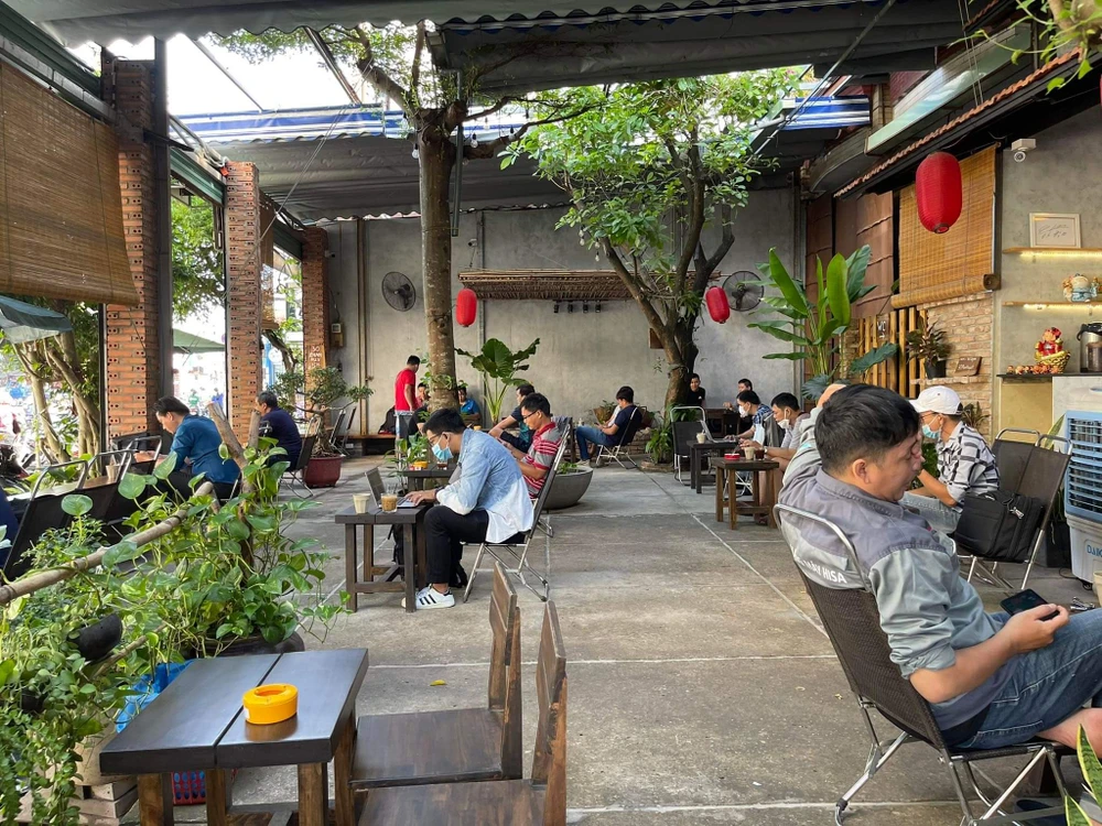 Một quán cà phê khác trong đường Bạch Đằng (Tân Bình) cũng đông khách dù chỉ được hoạt động 50% công suất.