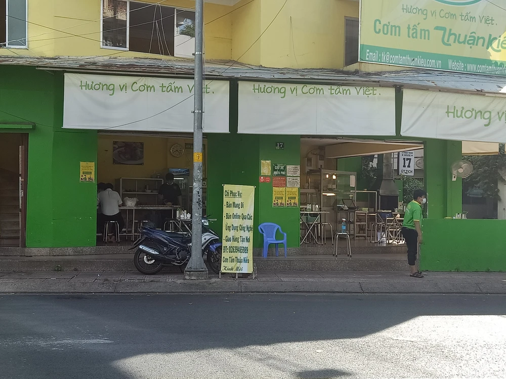 Mặc dù được mở bán tại chỗ, nhưng một quán cơm tấm trên đường Hoàng Việt (Tân Bình) vẫn khuyến khích khách mua mang về, và chỉ đón một lượng khách nhỏ ngồi ăn tại quán.