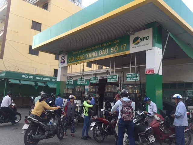 Tại cửa hàng xăng dầu số 17-Công ty Cổ phần Nhiên liệu Sài Gòn (quận Tân Bình, TP.HCM) khách ghé đổ khá đông. Phần lớn khách đổ xăng A95, có vài khách đến sau không có chỗ nên chạy vào bên trong mới đổ xăng E5.