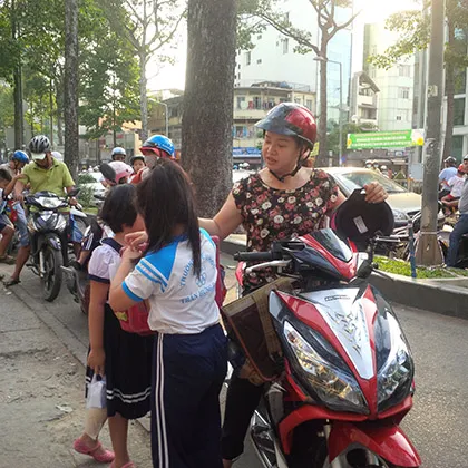 Còn anh Nguyễn Đình Tuấn (phường Linh Chiểu, Thủ Đức) sáng nay cũng chở hai con đến trường, nhưng chỉ đội mũ bảo hiểm cho một đứa. Anh nói rằng đã biết quy định xử phạt nhưng vì vội đi làm, nên quên đội mũ cho cậu con trai đang học lớp 4.