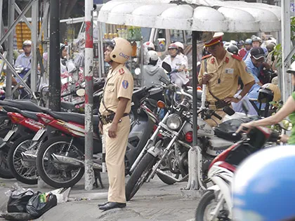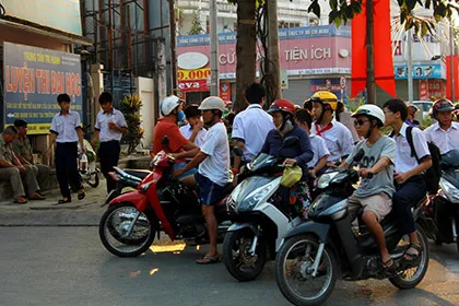 Việc xử phạt cũng đang được lực lượng chức năng cân nhắc thời điểm xử phạt và cách thức kiểm tra. Theo đó, sẽ kiểm tra trên đường chứ không chốt chặn trước cổng trường đồng thời việc kiểm tra chủ yếu sẽ diễn ra sau khi tan trường để tránh tình trạng các em học sinh đến trường trễ giờ học. Ảnh: ĐỨC NAM - HỮU NHẬT