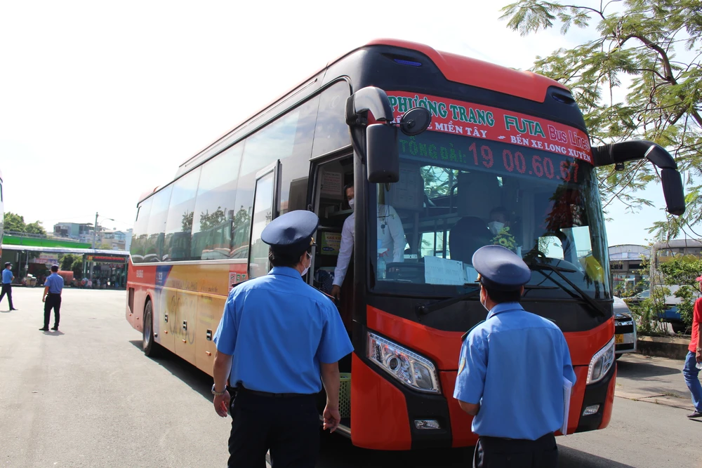 Quá trình kiểm tra được thực hiện ở khu vực xuất bến và vào bến, thanh tra tiến hành kiểm tra giấy tờ và các camera trực tiếp.