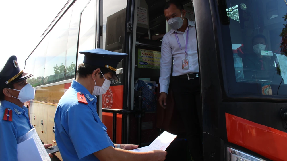 Đội Thanh tra giao thông số 1 tiến hành kiểm tra giấy tờ và camera trực tiếp tại các bến xe (trước khi xuất bến và sau khi vào bến).
