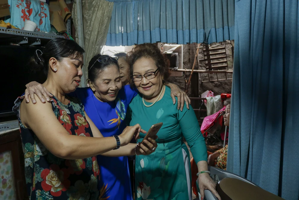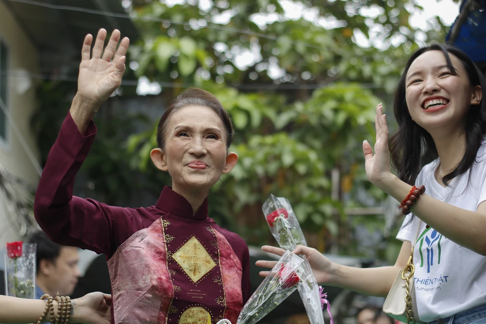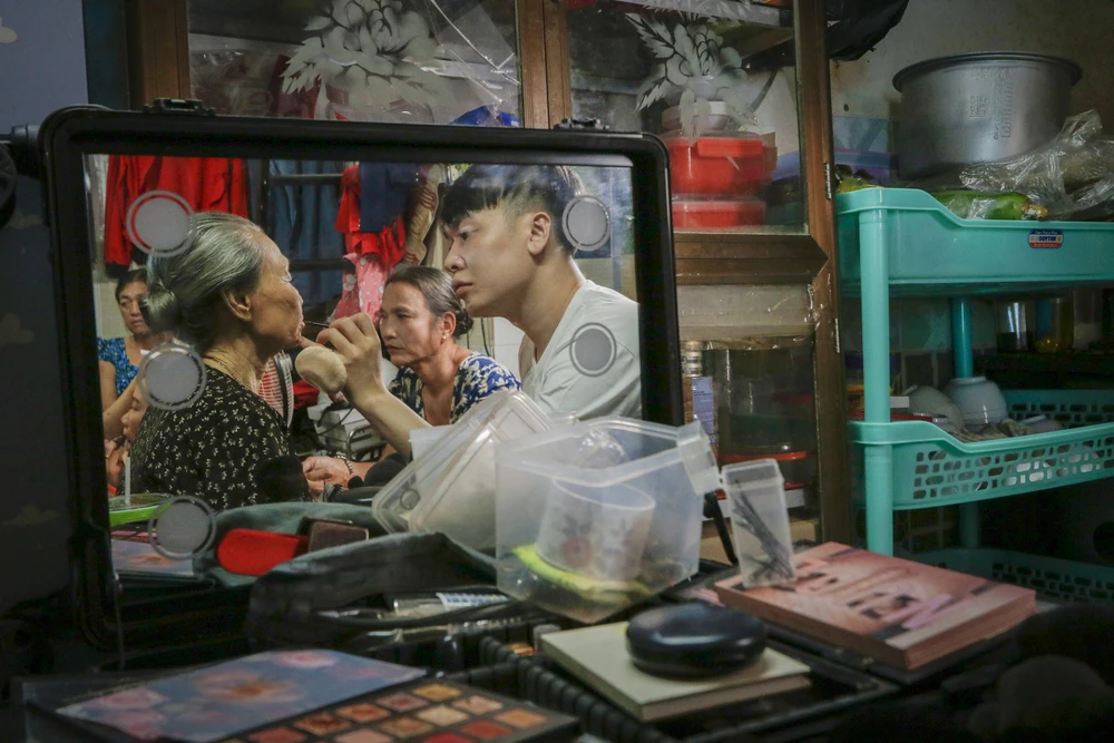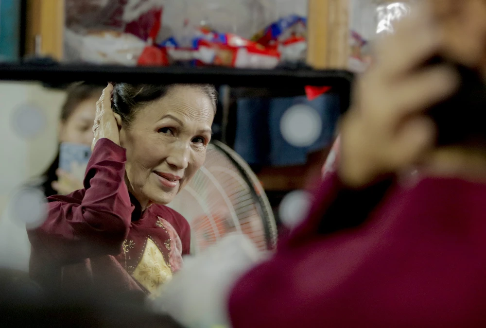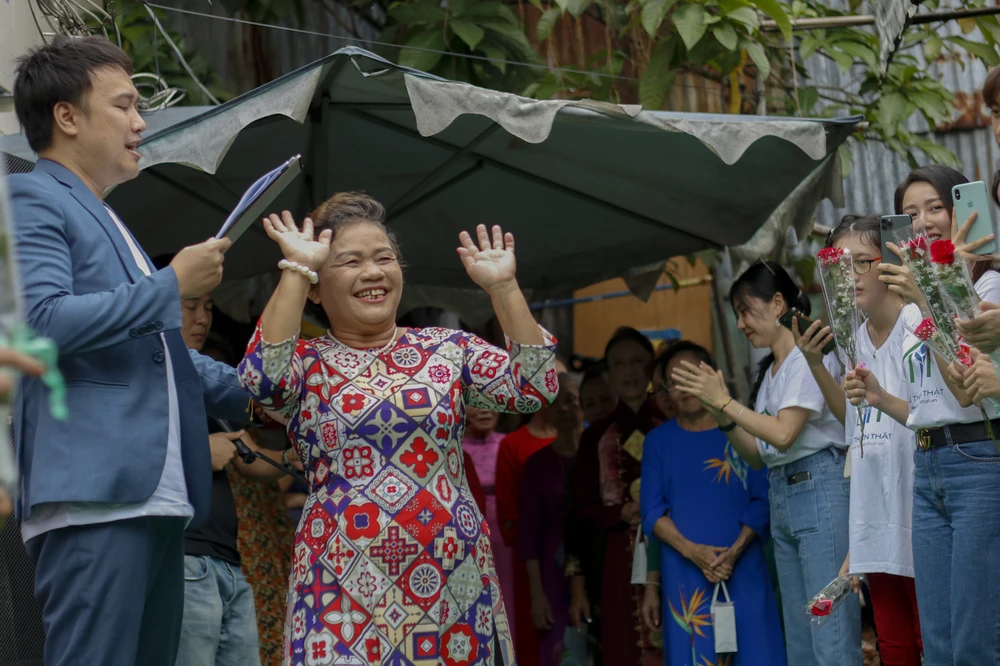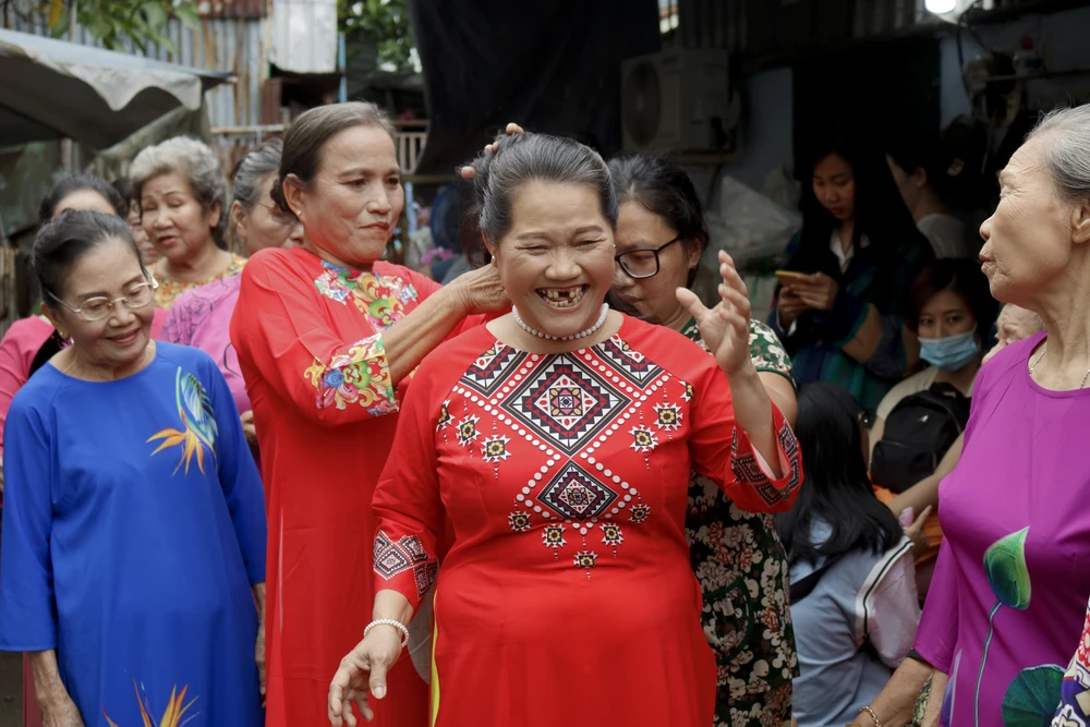 Ekip đã giúp các cụ, các bà trong xóm trang điểm, làm tóc, diện áo dài...