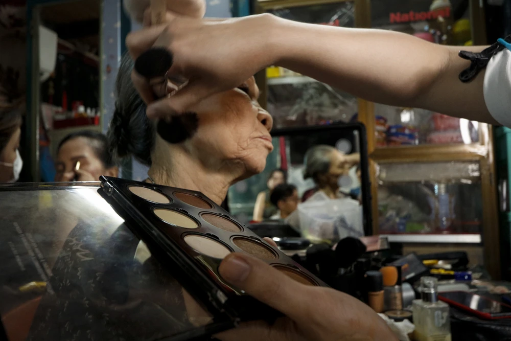 “Hôm nay chúng tôi trang điểm cho 16 cụ. Khi trang điểm, chúng tôi phục vụ họ chỉn chu như một khách hàng, mang cho họ niềm trân trọng trong ngày đặc biệt này" - Anh Giới chia sẻ.