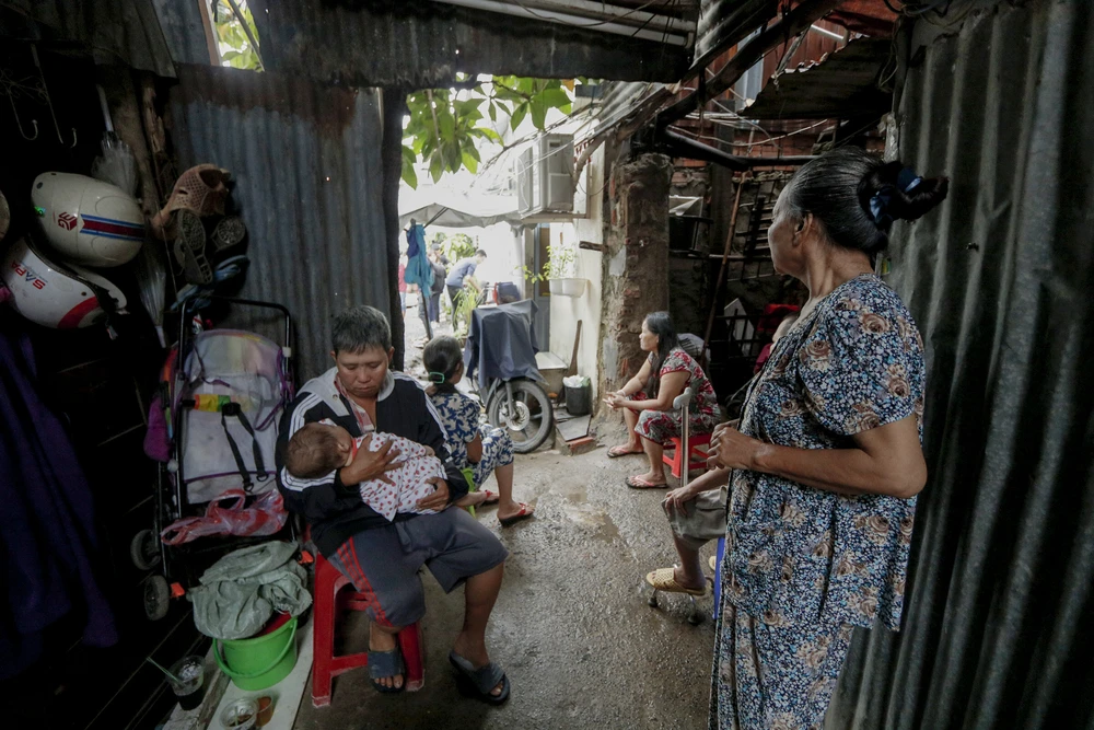 Hơn 10 giờ, mọi thứ đã chuẩn bị xong, tiếng cười rộn ràng trong xóm trọ nghèo.