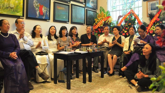 Cựu nữ sinh Đồng Khánh (Huế) đang hát cho Trịnh nghe trong ngày giỗ của ông tại Gác Trịnh - Ảnh: Tiến Long