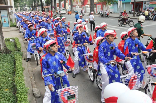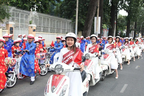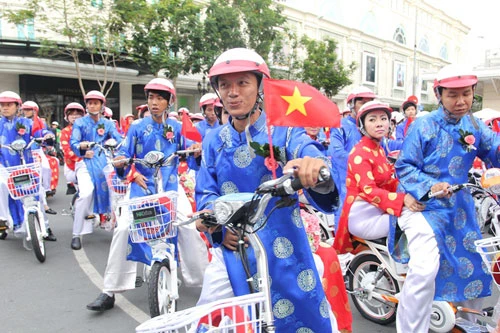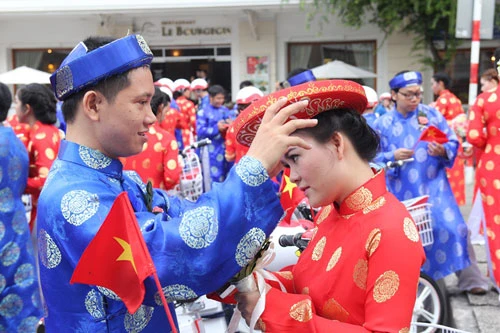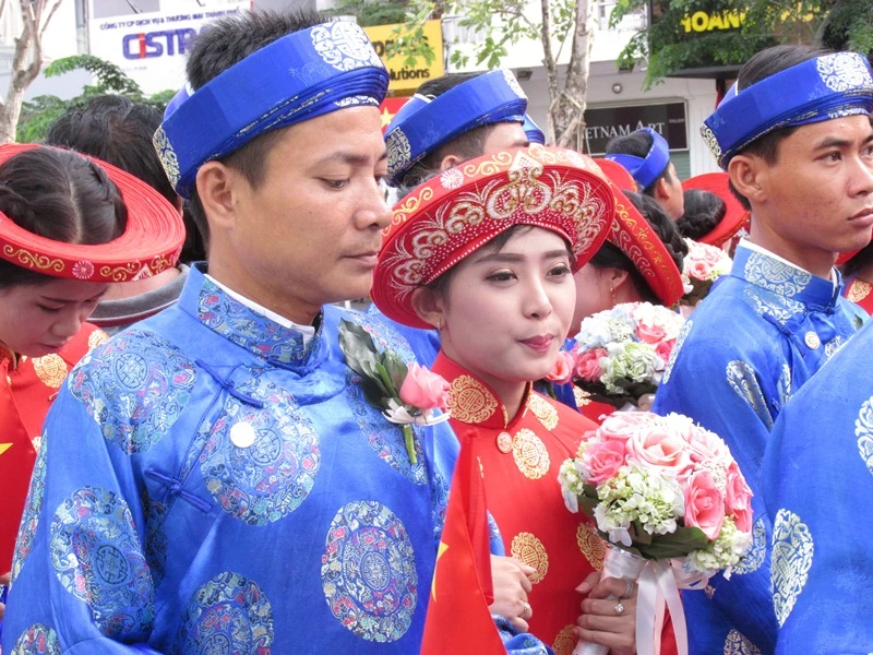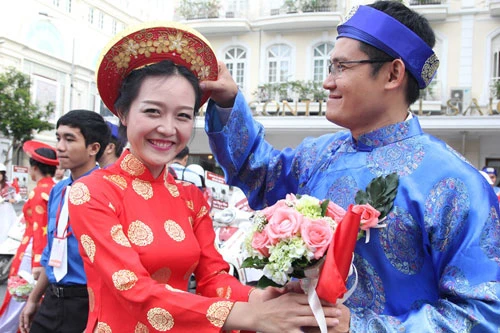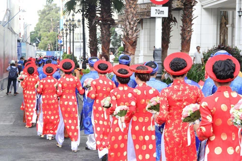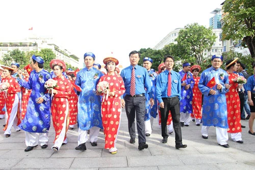 Các xe hoa của lễ cưới bắt đầu diễu hành qua các tuyến đường lớn ở TP.HCM và dâng hoa tại tượng đài Bác Hồ. Kết thúc lễ diễu hành xe hoa và dâng hoa tại Tượng đài Bác Hồ, 100 đôi uyên ương di chuyển về nơi tổ chức tiệc cưới tại Trung tâm tiệc cưới Melisa Center, quận Tân Phú.