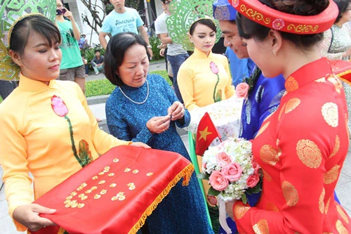 Chỉ với mức phí trách nhiệm 1.000.000 đồng/đôi, cô dâu, chú rể được hỗ trợ bàn tiệc, nhẫn cưới, xe hoa, bánh cưới, chụp ảnh, quay phim, trang điểm, trang phục cưới, cặp gối, phiếu mua sắm siêu thị (500.000 đồng/phiếu). Điều kiện bắt buộc là phải có giấy đăng ký kết hôn và chưa tổ chức đám cưới.
