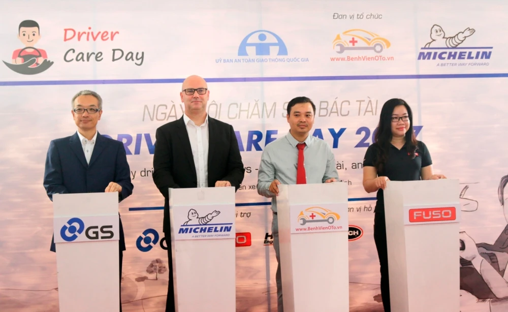 Ngày hội Chăm sóc bác tài - Driver Care Day của FUSO có sự tham gia của Bệnh viện Ô tô, hãng Lốp Michelin, thiết bị cân chỉnh thước lái Hunter... và Ủy ban An toàn Giao thông Quốc Gia.
