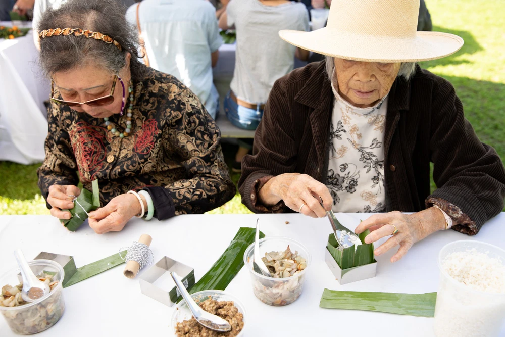 Tại một cánh đồng ở thành phố Los Angles, thuộc bang California (Mỹ), đầu bếp Diep Tran gấp từng chiếc lá chuối như gấp giấy, miết từ ngón tay dọc theo các nếp gấp. Khi cô cho một ít thịt heo và gạo vào, rất nhiều phụ nữ cúi xuống, quan sát từng động tác của cô. “Đừng cho nhiều quá nhé!”, cô Tran nói. “Đừng quên, vì gạo sẽ nở ra khi nấu mà!”.