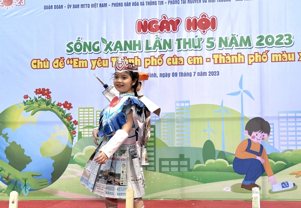 Đến với Ngày hội, các em thiếu nhi đã có những trải nghiệm thú vị khi tham gia hội thi trình diễn thời trang tái chế. Mỗi đơn vị thực hiện thiết kế 2 bộ thời trang tái chế bằng các chất liệu: nilong, chai nhựa..., sau đó thuyết minh và trình diễn sản phẩm.