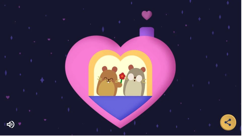Google chia sẻ: "Hãy nhìn vào hai chú chuột hamster nhỏ xíu trong Doodle 3-D tương tác ngày hôm nay. Bạn có thể ghép con đường của chúng lại với nhau và dọn đường để chúng bên nhau không? Như người ta vẫn thường nói, nhà là nơi có trái tim. Chúc mừng ngày Valentine".