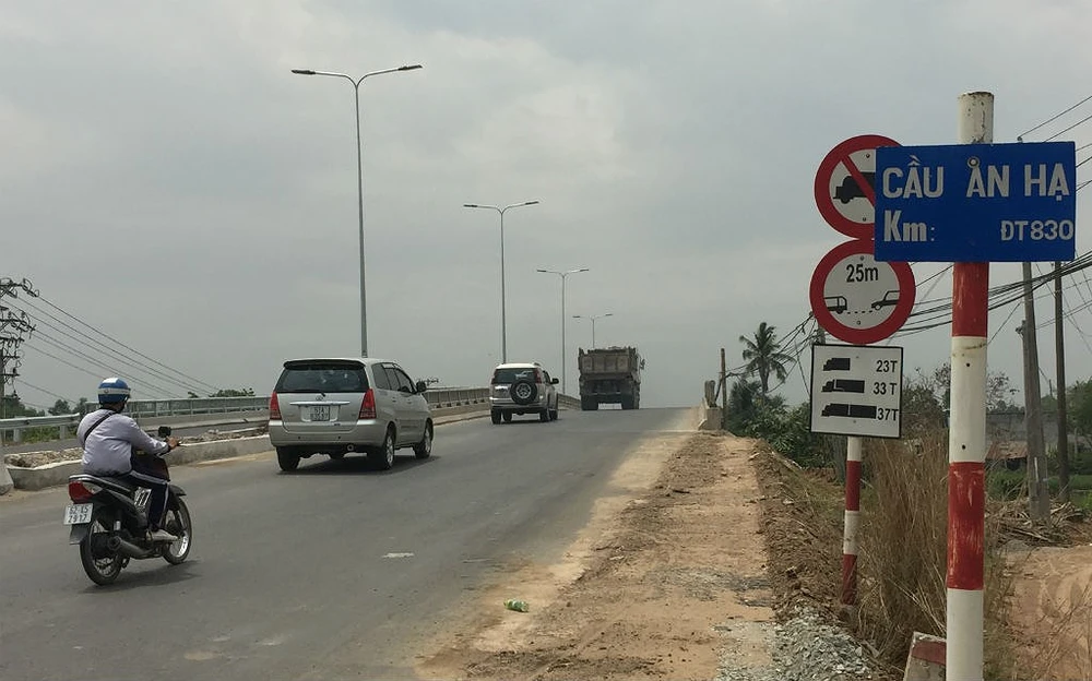 Trên tuyến có tám cầu cũ chỉ rộng 7-8 m với tải trọng dưới 10 tấn, nay được mở rộng lên gấp đôi để đồng bộ với chiều rộng mặt đường và tải trọng là không hạn chế. Trong ảnh: Cầu An Hạ trước chỉ dưới 10 tấn, nay không hạn chế tải trọng sau khi được làm mới, nâng cấp, mở rộng.