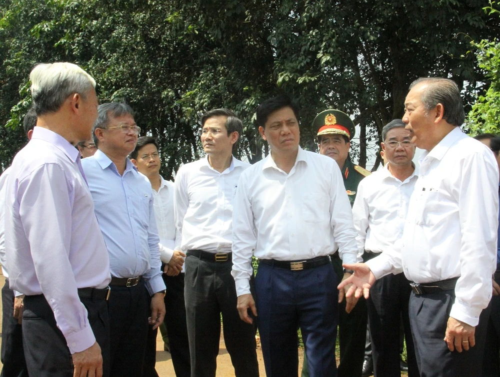 Mới đây, Phó Thủ tướng Trương Hòa Bình và Thứ trưởng Bộ GTVT Nguyễn Ngọc Đông thị sát công tác giải phóng mặt bằng khu vực 1.800 ha bàn giao xây dựng sân bay Long Thành. Ảnh: VH.