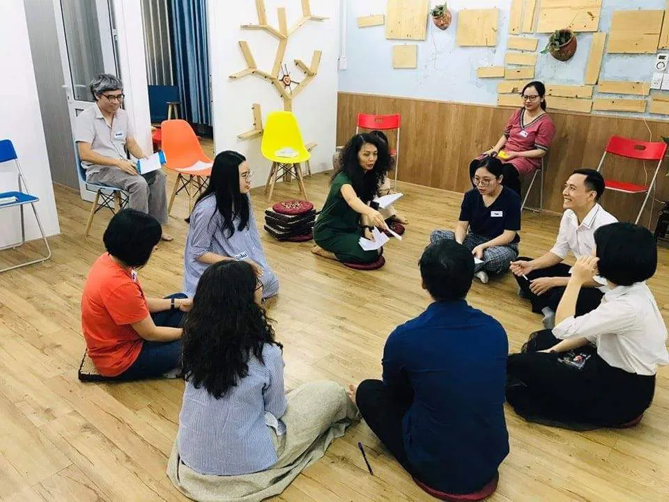 Các tình nguyện viên của dự án đường dây nóng “Ngày mai” đang trao đổi công việc. Ảnh: CTV