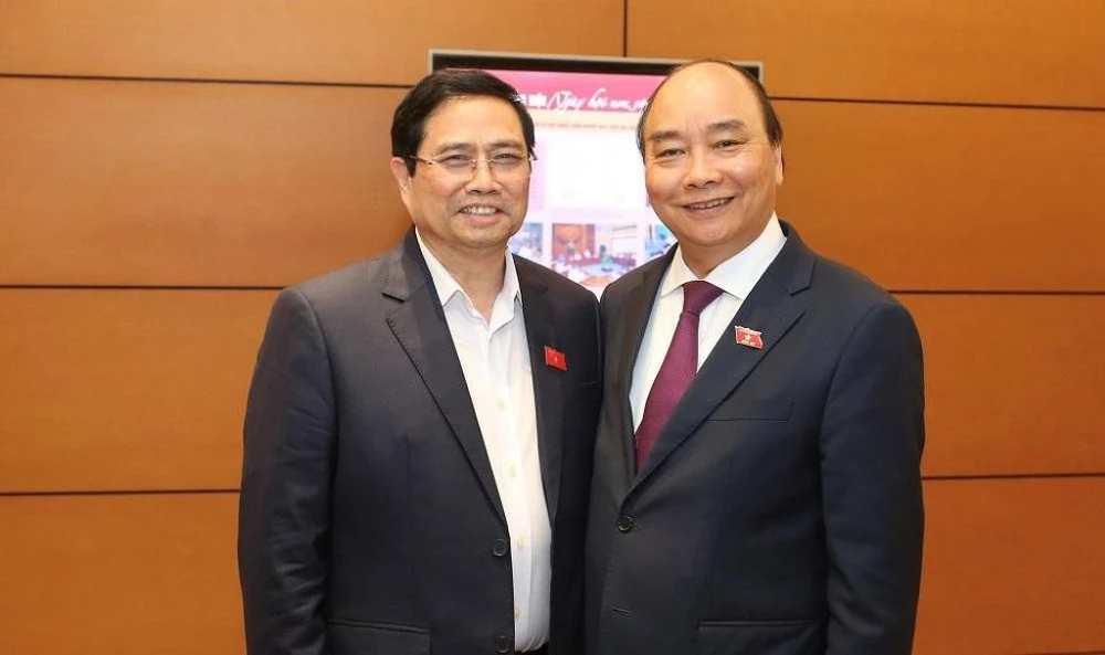 Trưởng ban Tổ chức Trung ương Phạm Minh Chính (trái) và Thủ tướng Nguyễn Xuân Phúc tại kỳ họp 11, Quốc hội khóa XIV. Ảnh: NHƯ Ý