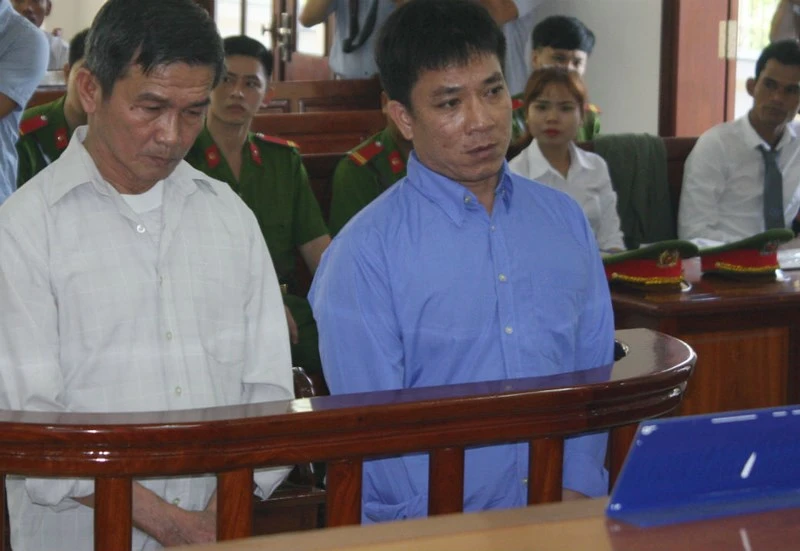Hai bị cáo Thượng và Giang tại tòa hồi tháng 11-2017. Ảnh: Vũ Hội