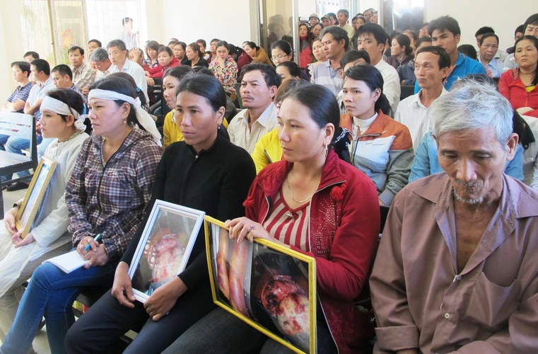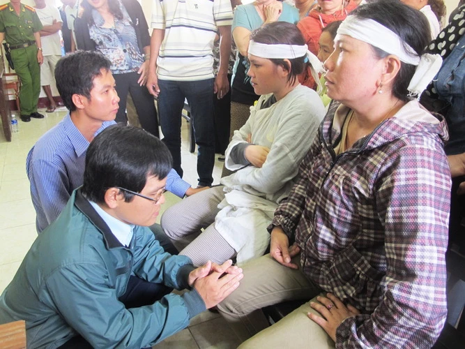 Gia đình bị hại tại phiên tòa sơ thẩm. Ảnh: TẤN LỘC