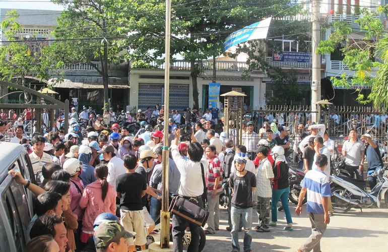 Người dân tập trung phản đối mức án quá nhẹ sau khi tòa sơ thẩm tuyên án. Ảnh: TẤN LỘC