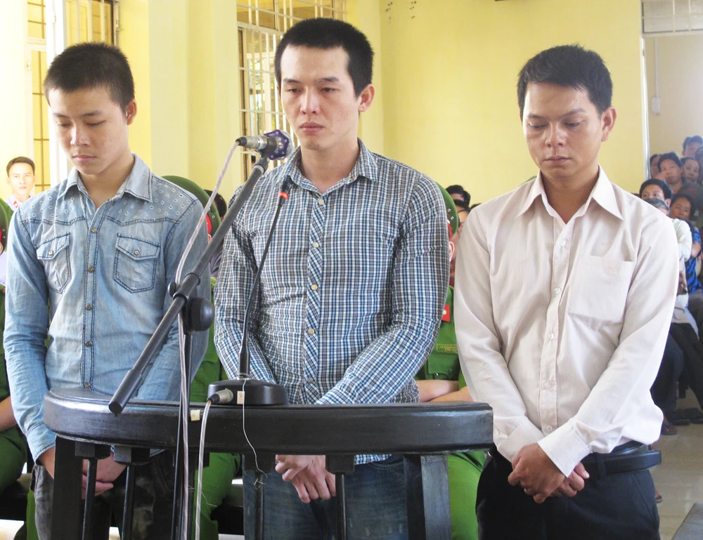 Ba bị cáo tại phiên tòa sơ thẩm, từ trái qua: Lê Tấn Khoee, Lê Minh Phát, Lê Ngọc Tâm Ảnh: TẤN LỘC